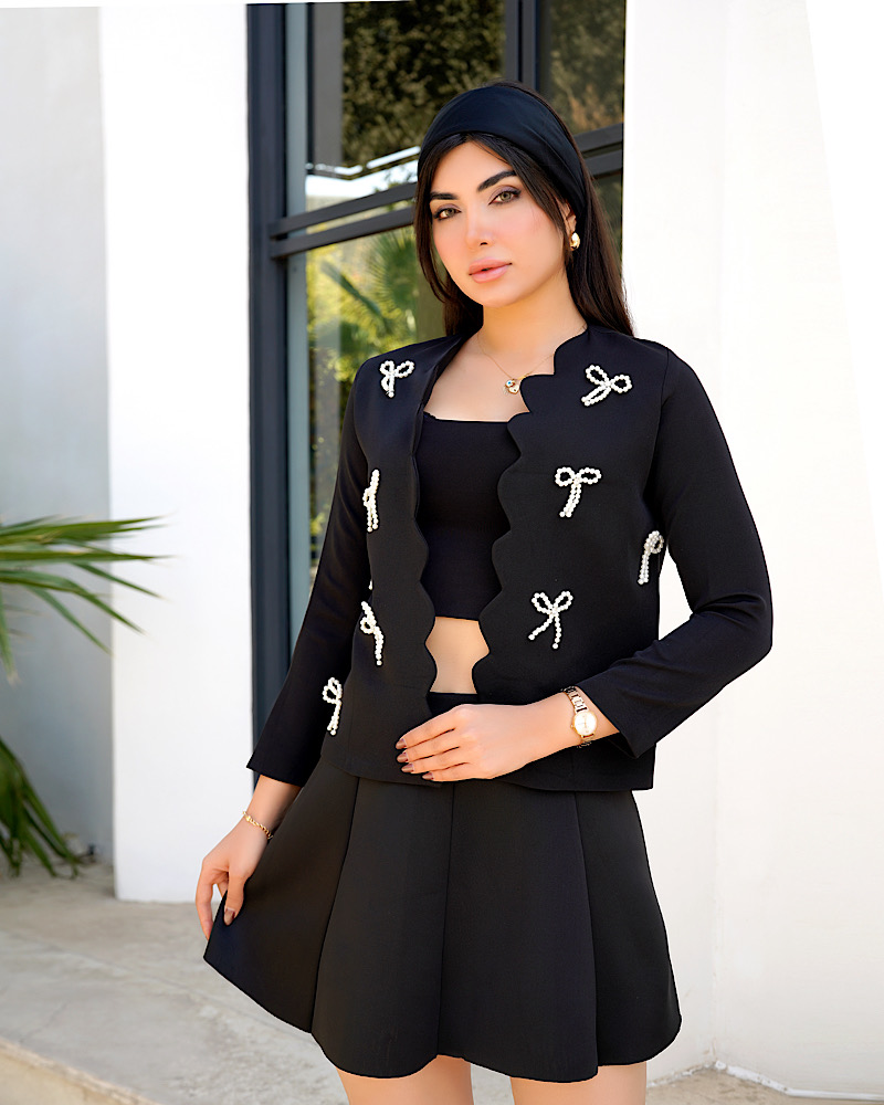 کت مجلسی زنانه مدل پاپیون مرواریدی