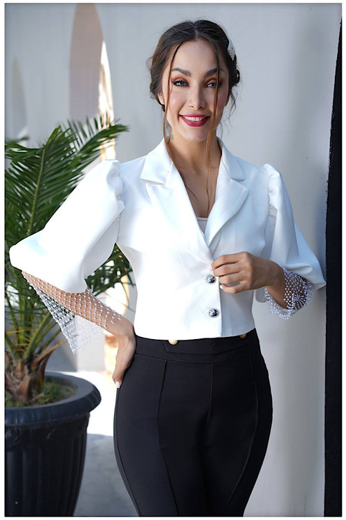 سایز دو:دور سینه ۹۲….دور بازو ۳۷…قد لباس ۵۰