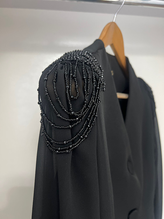 تراشه های سرشانه کت تماما دست دوزی شده است