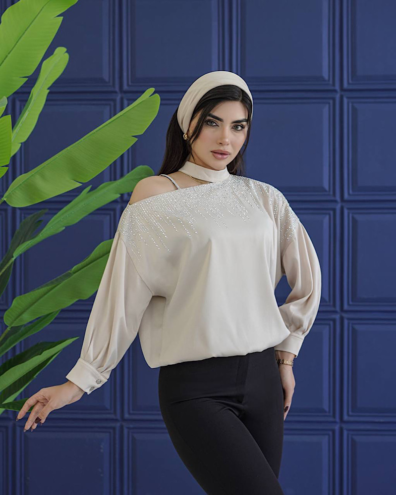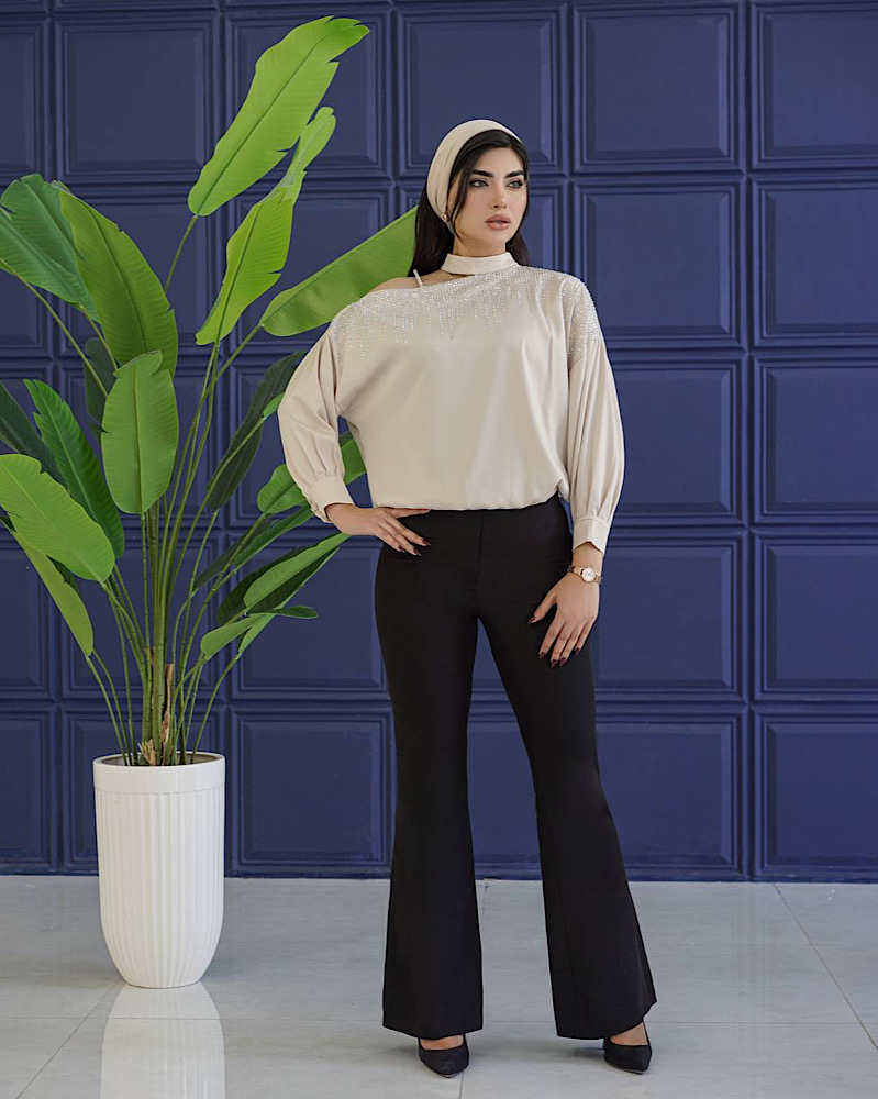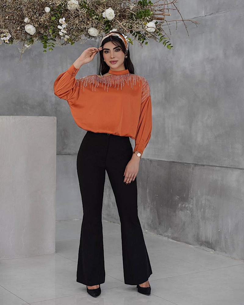 شومیز زنانه مجلسی مدل یقه نگین دار